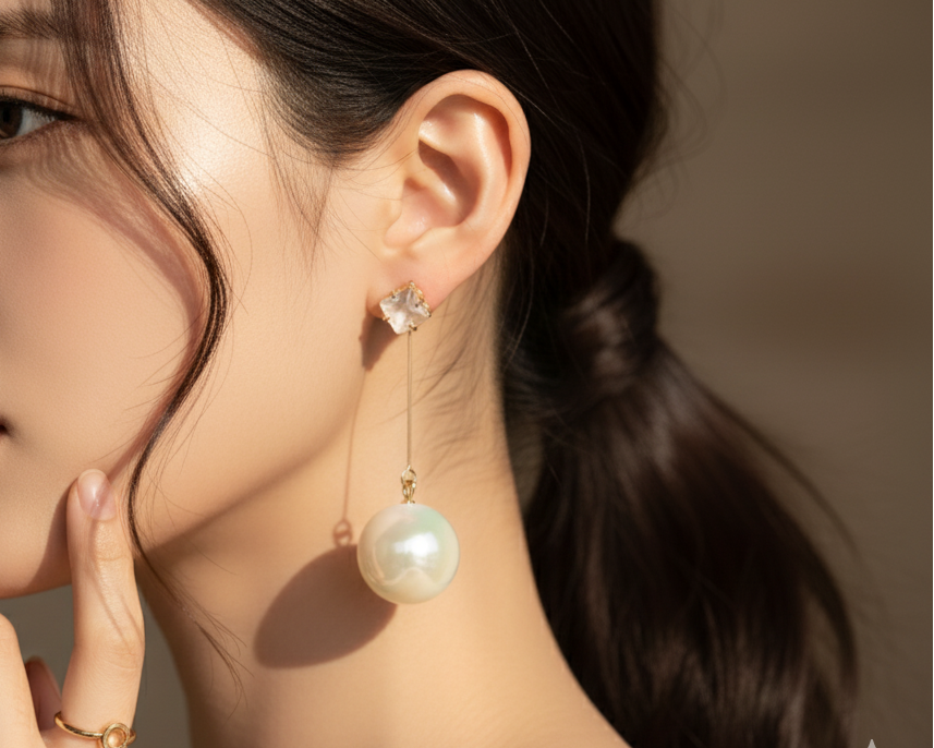 These delicate drop earrings feature a glowing opal-style stud paired with a smooth pearl drop, creating a timeless look perfect for both everyday elegance and special occasions.